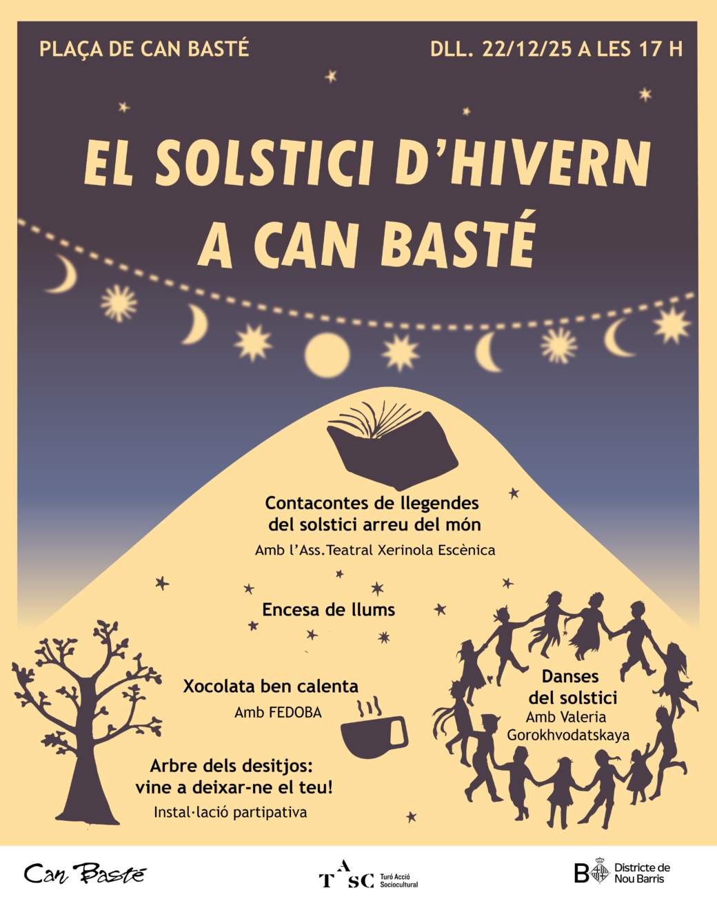 Una trobada oberta i participativa per celebrar el cicle natural del solstici d’hivern, compartir amb les veïnes, i omplir la plaça de colors, música i desitjos.