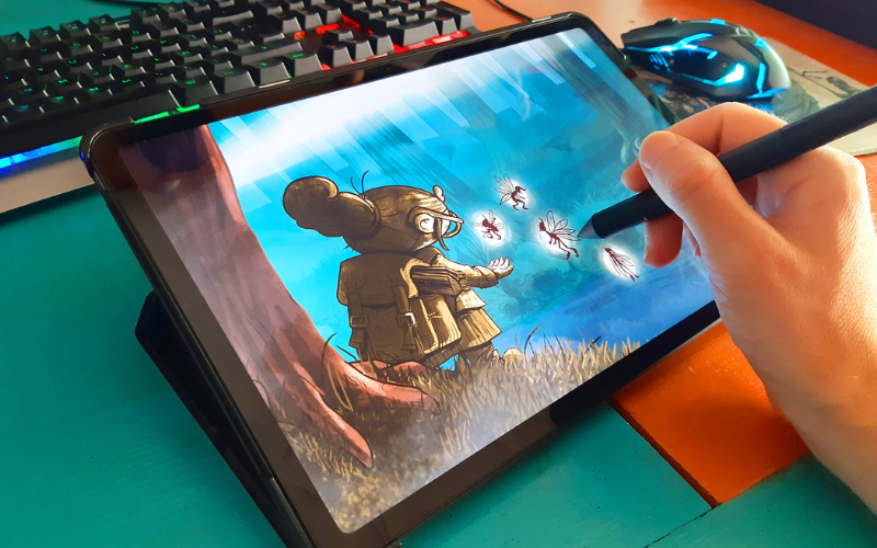 Pots treballar amb qualsevol dispositiu digital (tablet, ipad o portàtil + tauleta gràfica) que tingui un programari de creació gràfica d’imatge (photoshop, procreate, clip Studio,…)