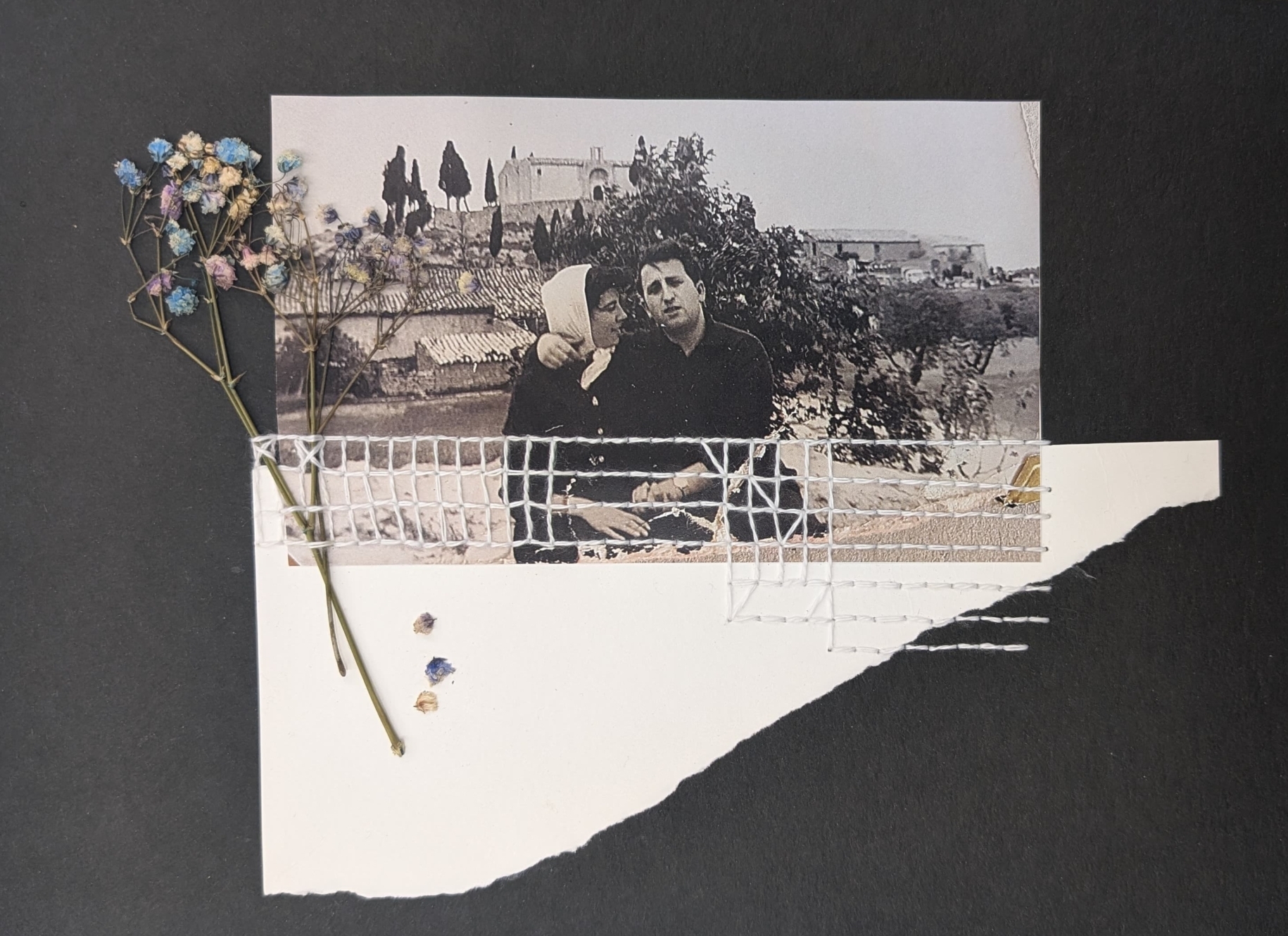 - Composició de collage amb tèxtils sobre foto.